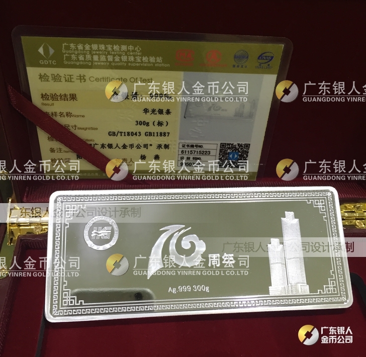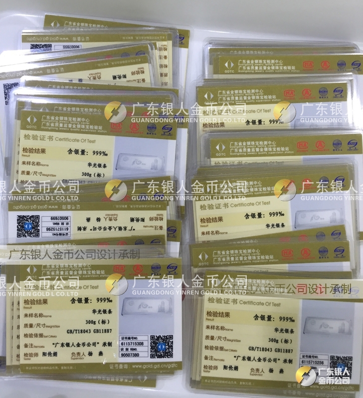 廣東銀人金幣公司承接客戶個性化定制的金銀幣、金銀章、金銀條、金銀牌、金銀盤均由國家質監部門、嚴格檢測、權威鑒定: