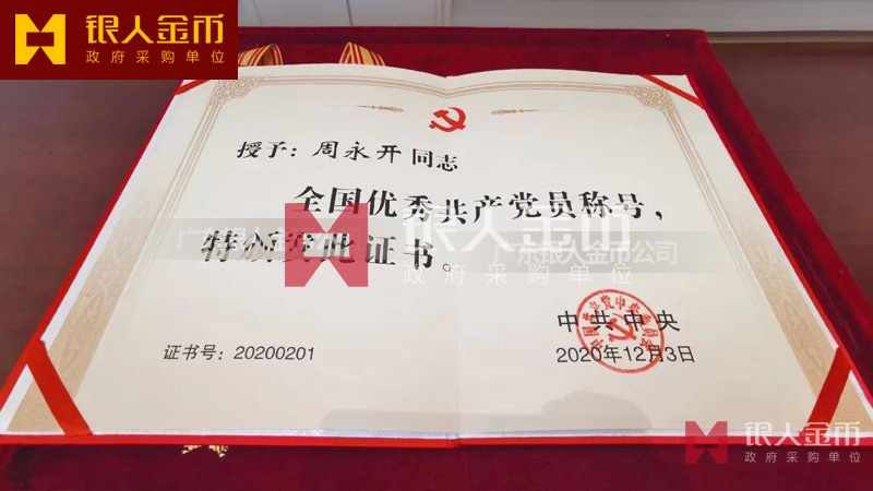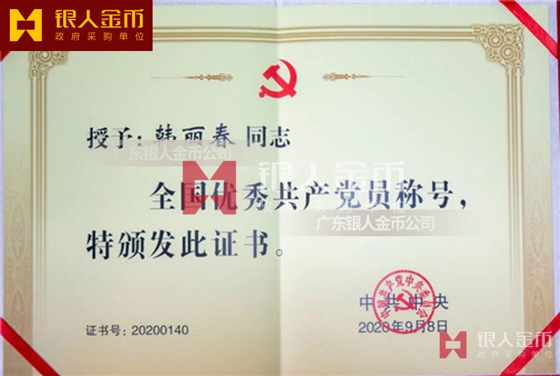 中共中央/中組部2020年“全國優秀共產黨員”稱號獎章、獎牌、證書(實物)