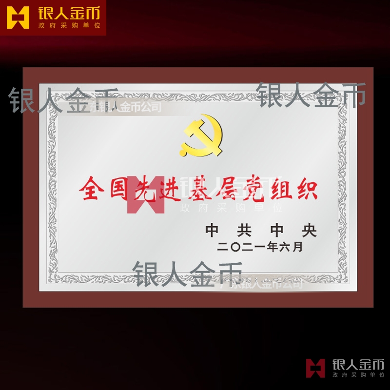 中共中央2021年度全國先進基層黨組織獎牌、全國先進基層黨組織證書、全國先進基層黨組織牌匾