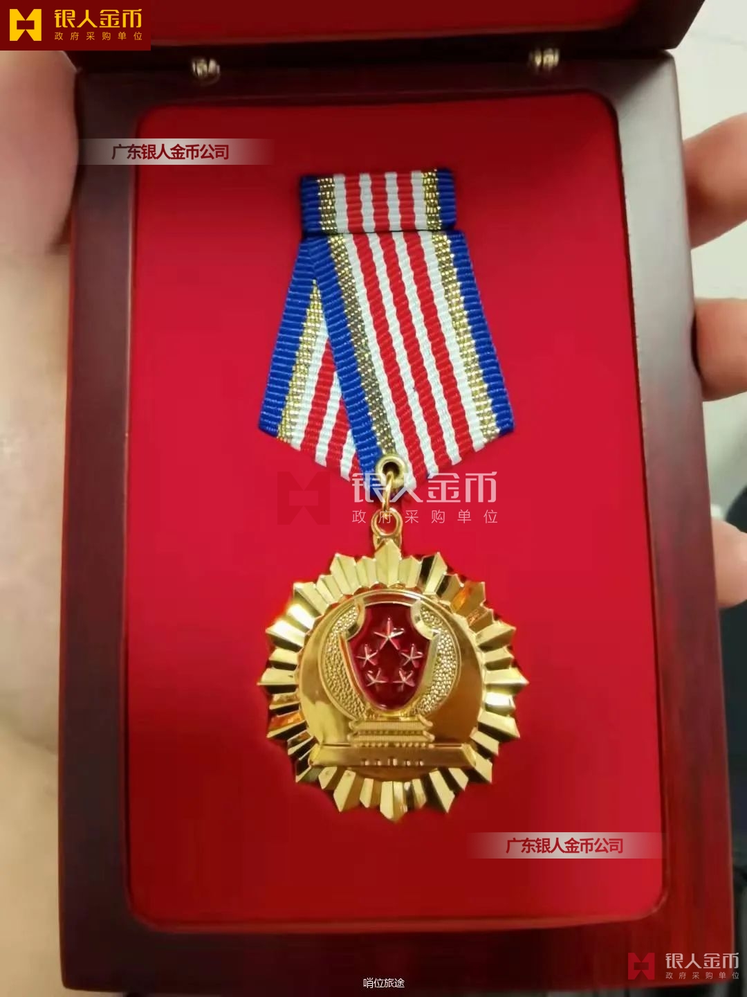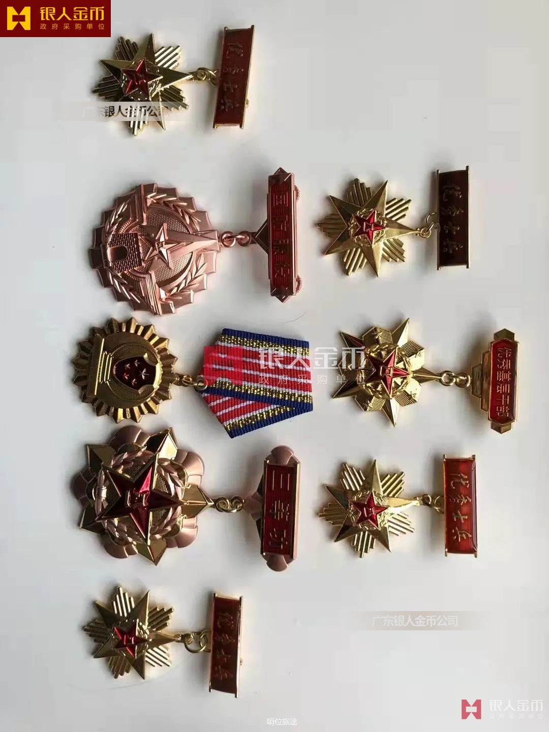 制作工藝:壓鑄成型、烤漆、一級英雄模范鍍24k金 配件材質(zhì):綬帶采用紅色絲綢