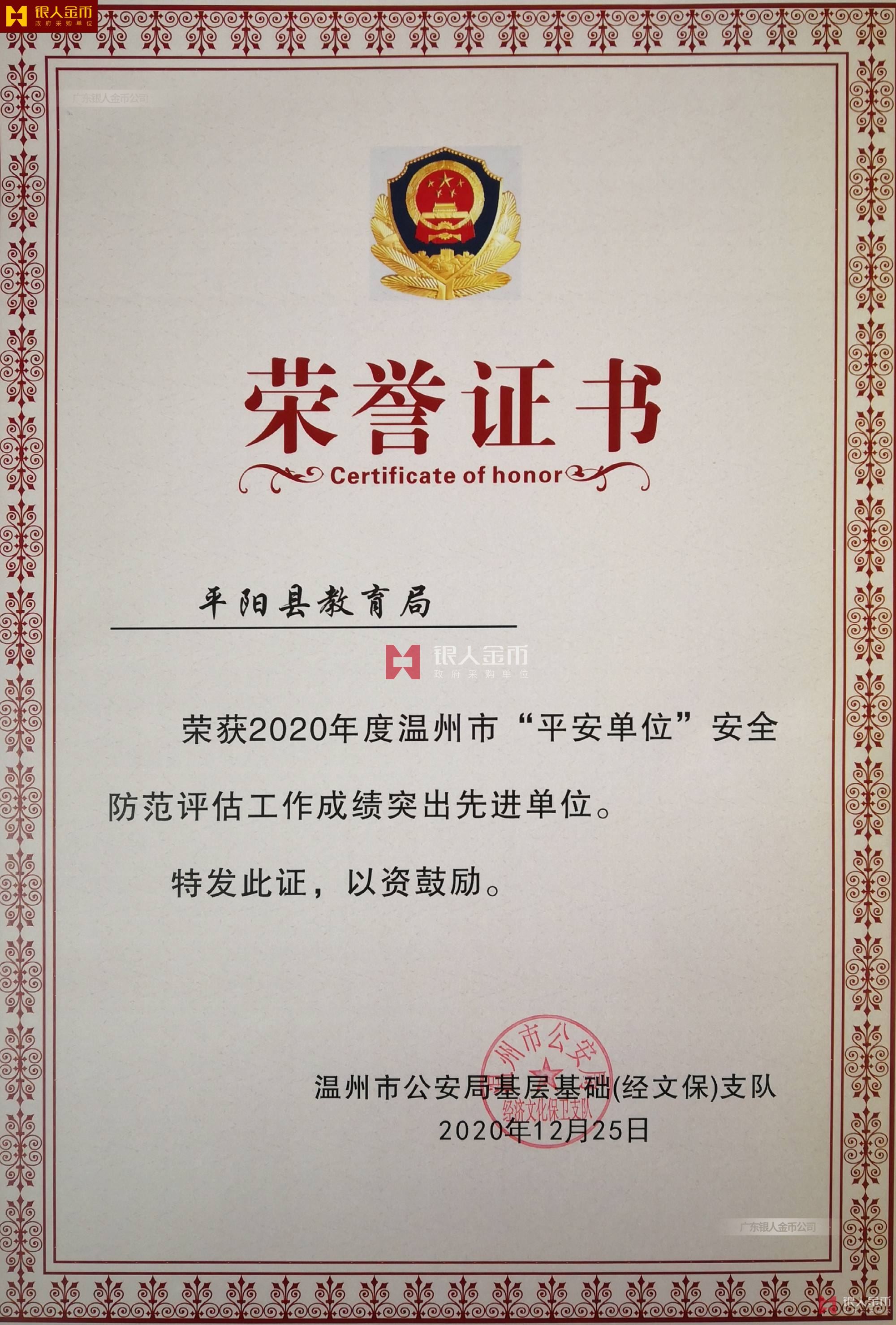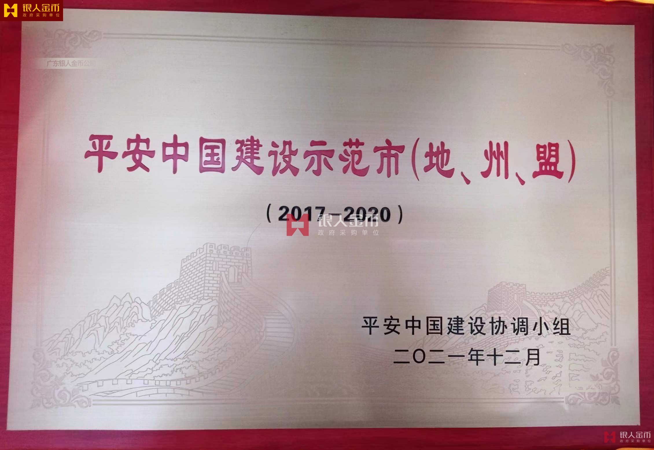 人社部平安中國建設工作領導小組頒發的人社部平安中國建設示范省市縣地州盟旗先獎牌和先進個人獎章證書(圖)