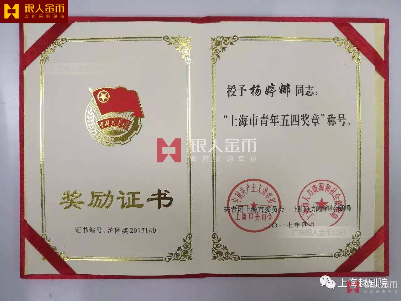共青團(tuán)中央/全國青聯(lián)中國青年五四獎?wù)潞椭袊嗄晡逅莫務(wù)录w獎牌(圖)