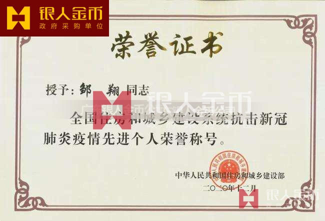 中華人民共和國住房和城鄉建設部抗擊疫情先進集體個人獎牌證書(圖)