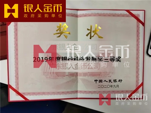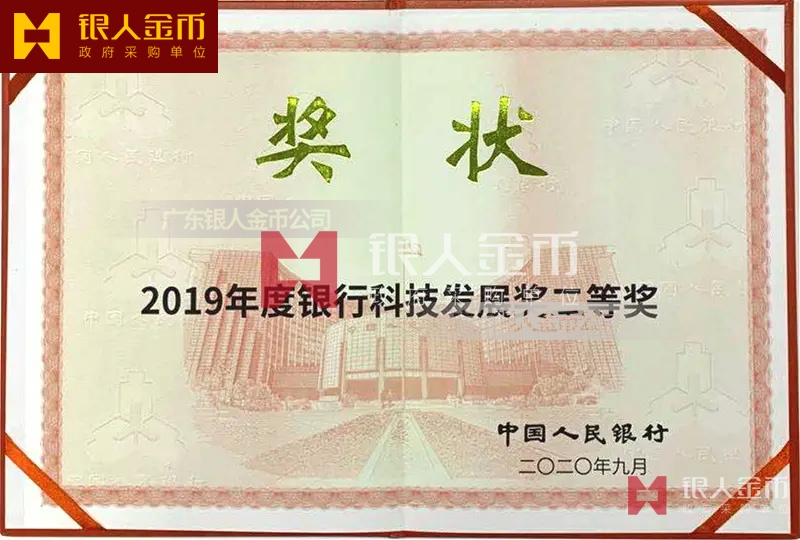 中國人民銀行年度“銀行科技發展獎”榮譽證書獎勵證書獎狀及獎牌獎章證章徽章紀念章(圖)