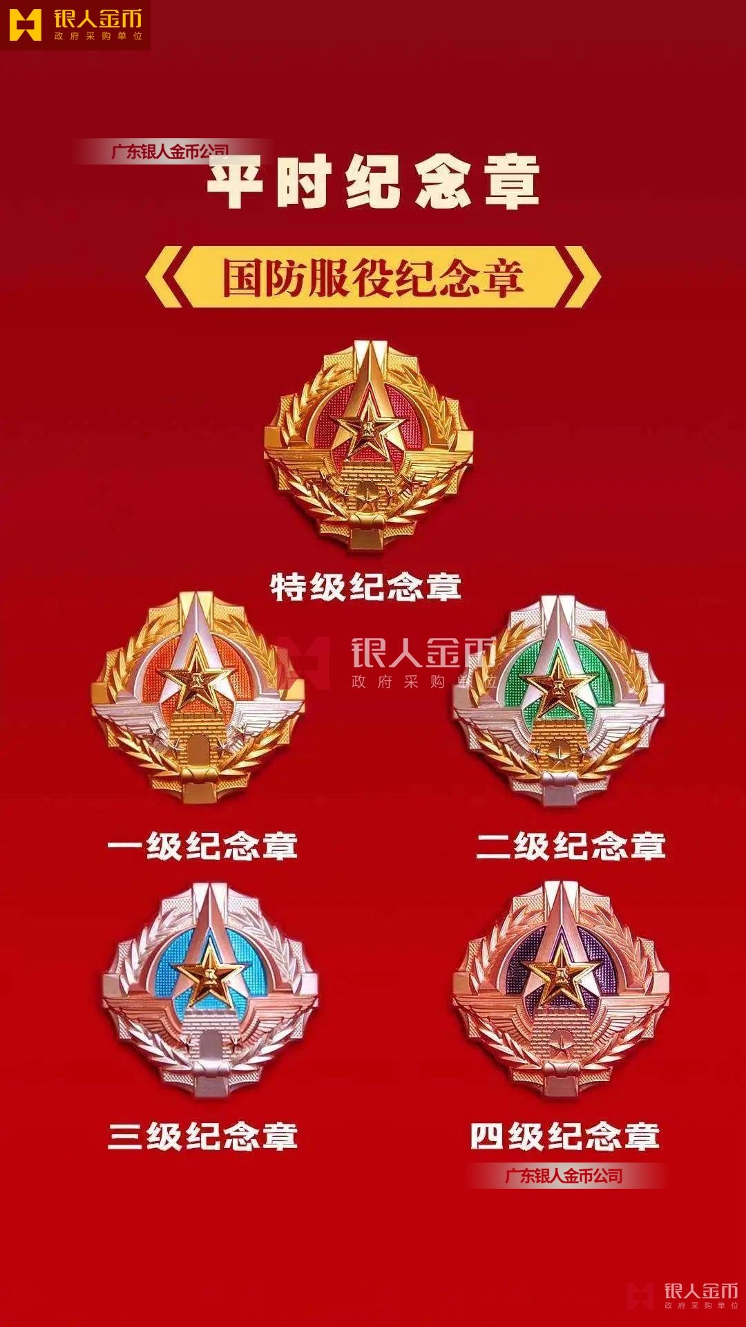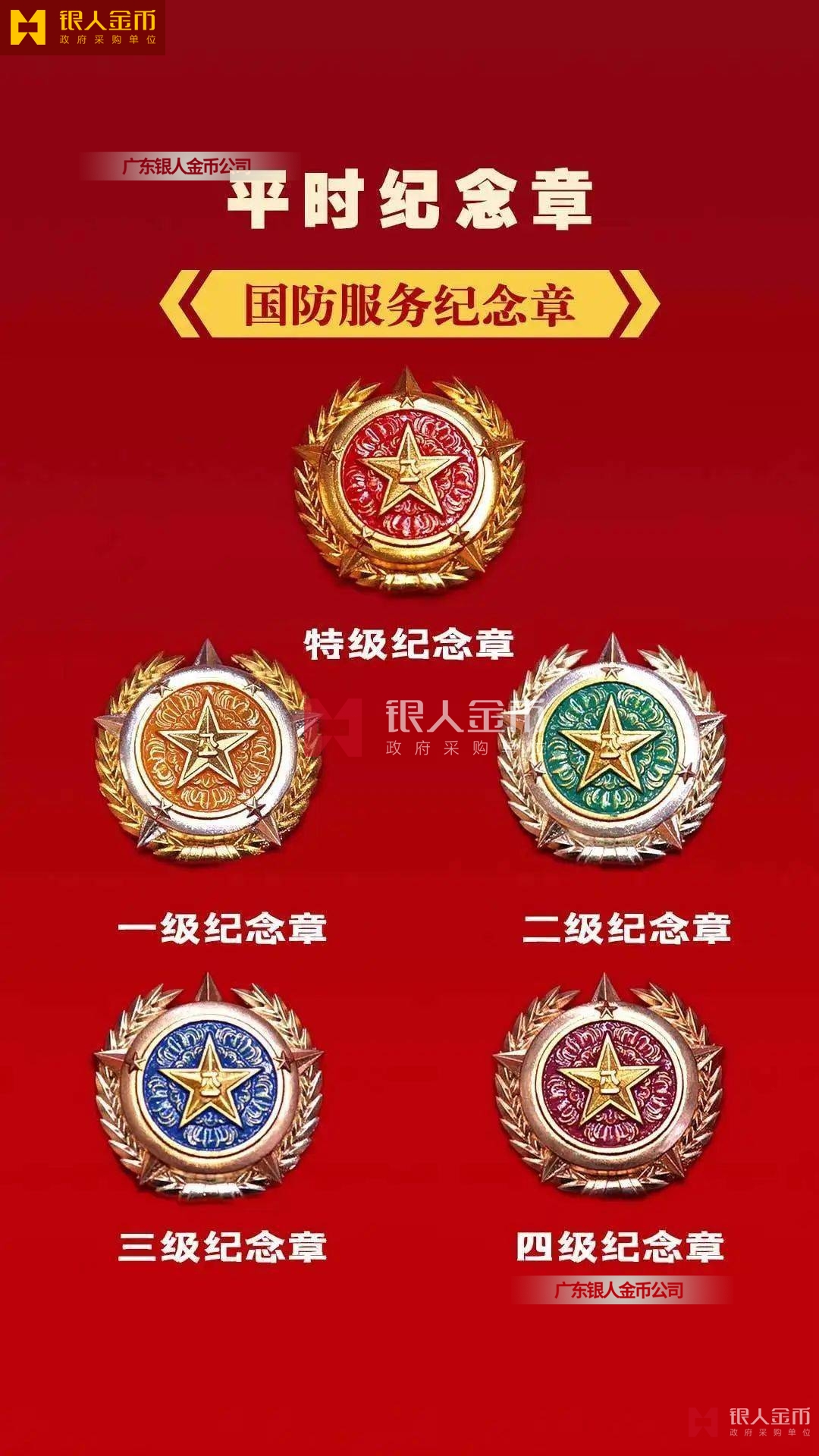 規格上,從內容元素、尺寸外觀、制作材質等方面進行區分,從紀念章到勛章尺寸依次增大。