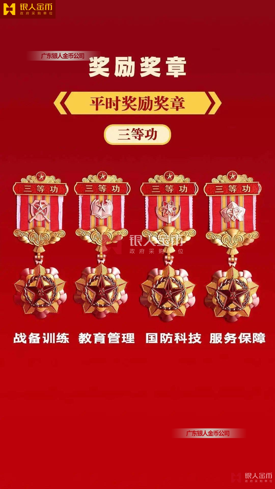 黨中央頒發的國家功勛章和紀念章及功臣獎章、國務院授予的國家功臣勛章和紀念章、中央軍委授予榮獲的軍功章和勛功章與紀念獎章及紀念章包括榮譽獎章和榮譽勛章、原國防部國防科工委發放的勛功章和榮譽章和榮譽證章及紀念徽章、國家部委級表彰的高檔獎牌獎章勛章證章及榮譽紀念牌與榮譽紀念章、各地省委自治區直轄市表彰的獎章勛章與紀念證章、各地區行署州委市委獎勵的獎章獎牌和紀念獎牌與紀念胸章、各公檢法政法委政府單位獎勵表彰的紀念牌、退休紀念章、榮休紀念牌、包括各企事業單位記功記大功獎章、公務員一二三等功獎章。