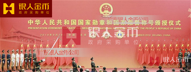 2019年,國慶七十周年之際,中宣部委派中央電視臺授權廣東銀人金幣公司為國慶70周年紀念章設計制造單位。過去社會上常常把金幣公司這個行業稱為“三特”行業,指的是“生產特殊產品的、實行特殊管理的特殊行業”。