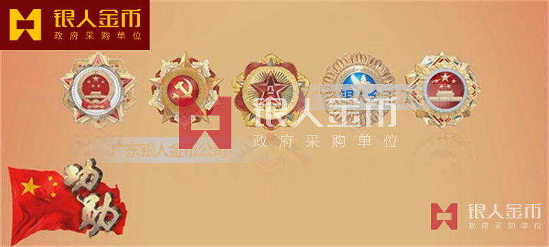 在全國獎章勛章領域,廣東銀人金幣公司擁有專業的勛章產業規模、齊全的證章門類和完整的紀念章產業鏈條。除了負責各省市政府部門表彰獎勵勛章、獎章、紀念章的設計、研發、定制、服務于榮譽功勛全生命周期管理,廣東銀人金幣公司還是標準國標999黃金足金金條的制造者之一。