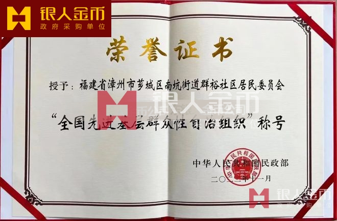 中華人民共和國民政部頒發(fā)“全國先進(jìn)基層群眾性自治組織”獎狀及獎牌牌匾證書(制作標(biāo)準(zhǔn))-【廣州獎牌徽章廠有限公司】