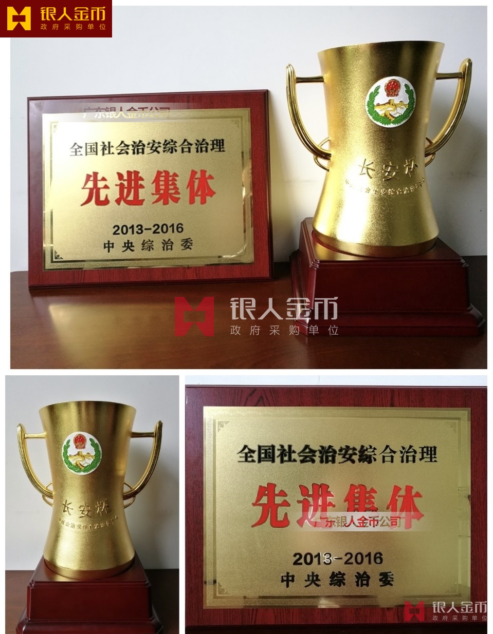 中央綜治委全國平安中國建設長安杯獎杯尊貴榮譽獎杯高檔獎牌證書(圖)