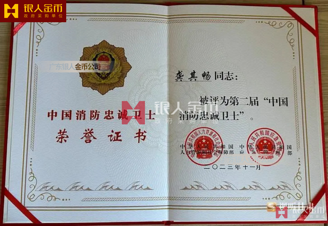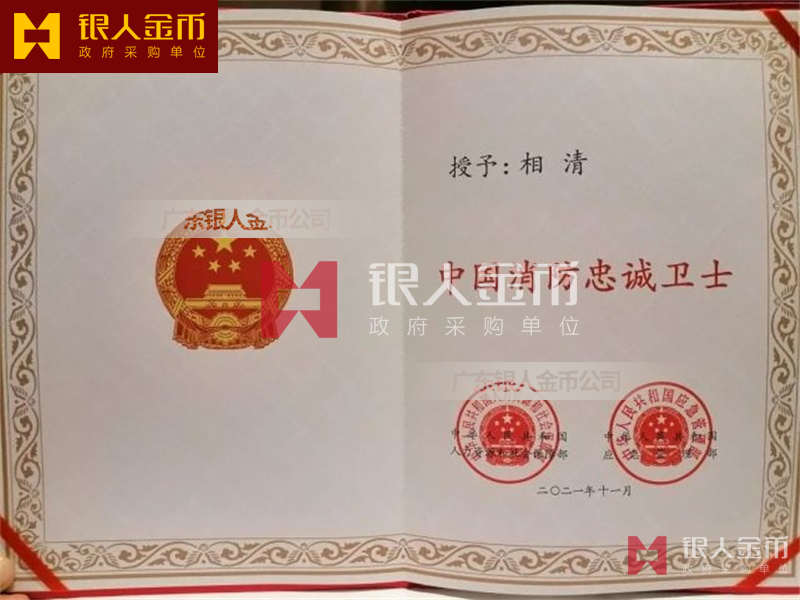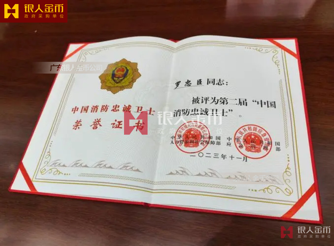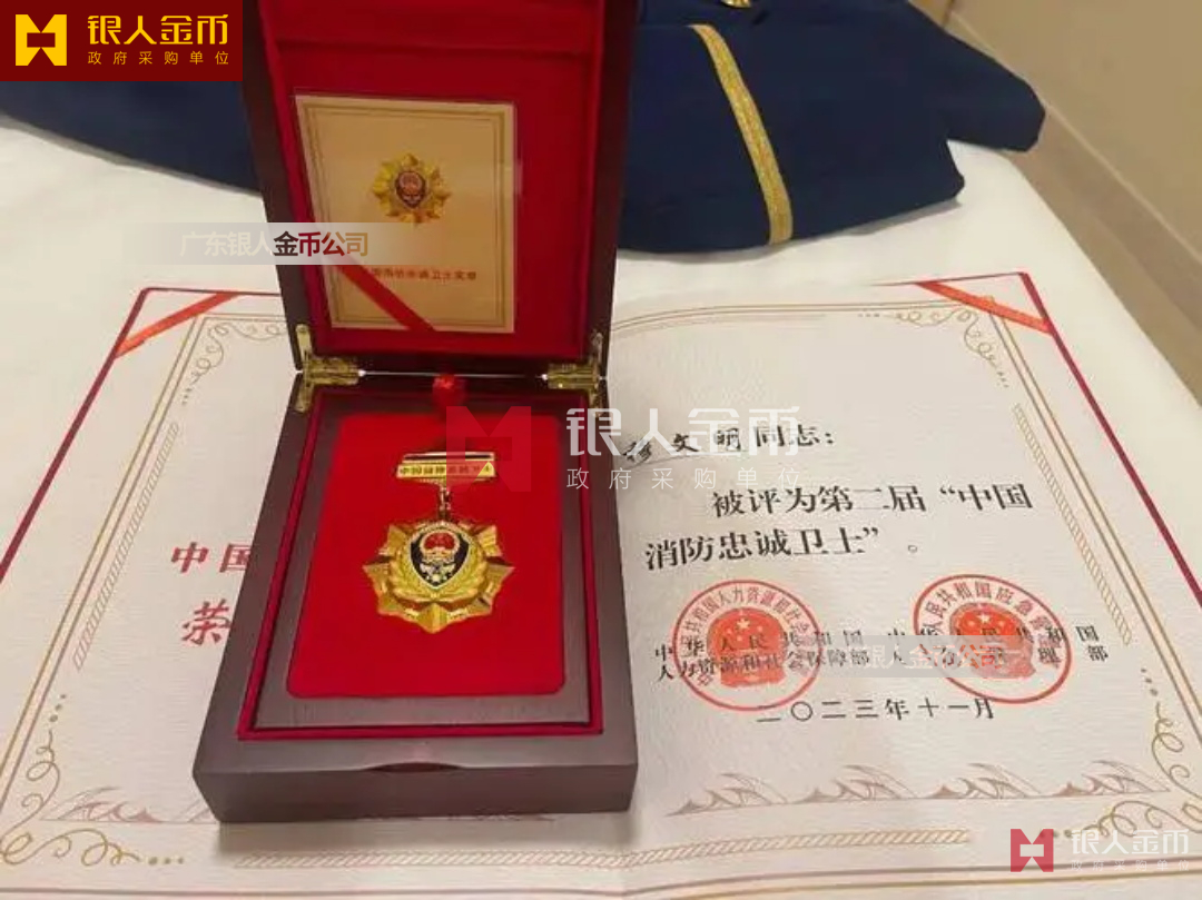 應急管理部中國消防忠誠衛(wèi)士獎章與全國應急管理系統(tǒng)二級英雄模范獎章證書(圖)