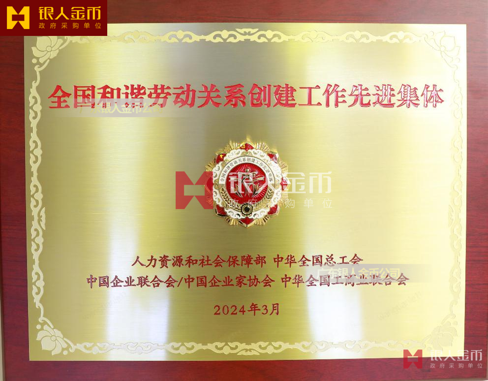 人社部全國和諧勞動關系創建工作先進集體獎牌證書牌匾銅牌(圖)