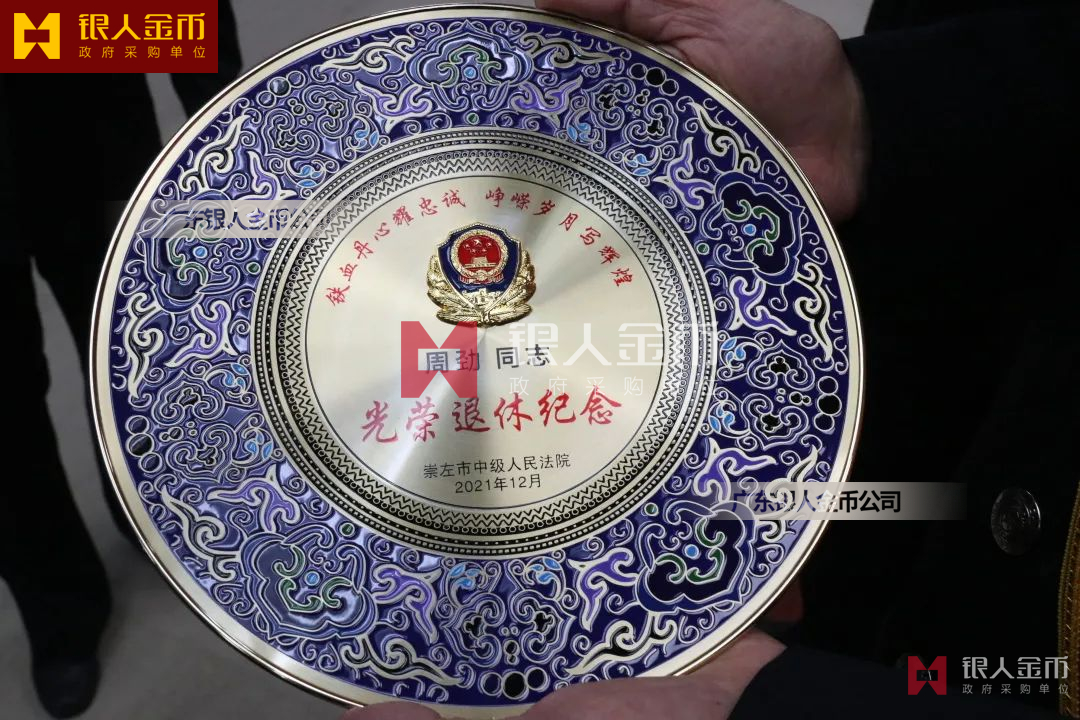 廣西崇左市中級人民法院司法警察光榮退休紀念盤獎盤擺件圓盤錫盤(圖)