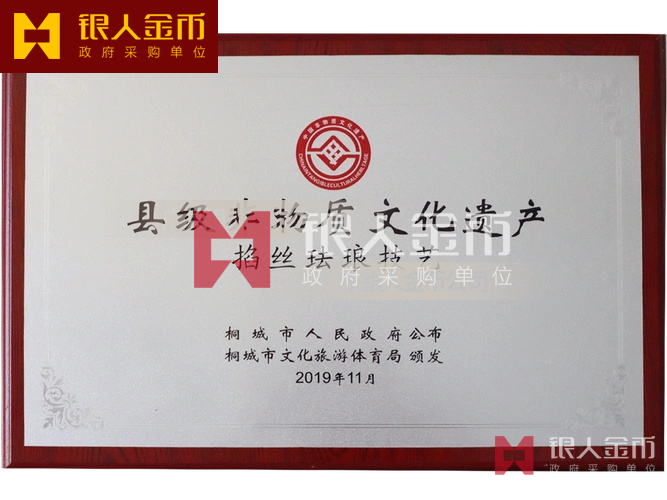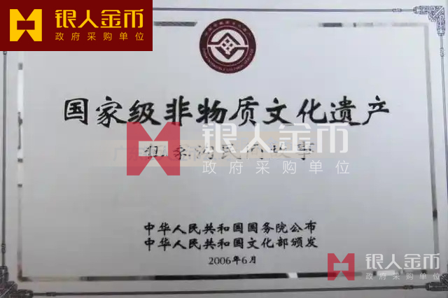 國務院文旅部頒發的國家級非物質文化遺產獎牌牌匾稱號【國家級非物質文化遺產榮譽體系標準規范】