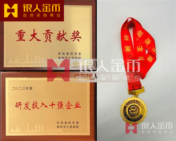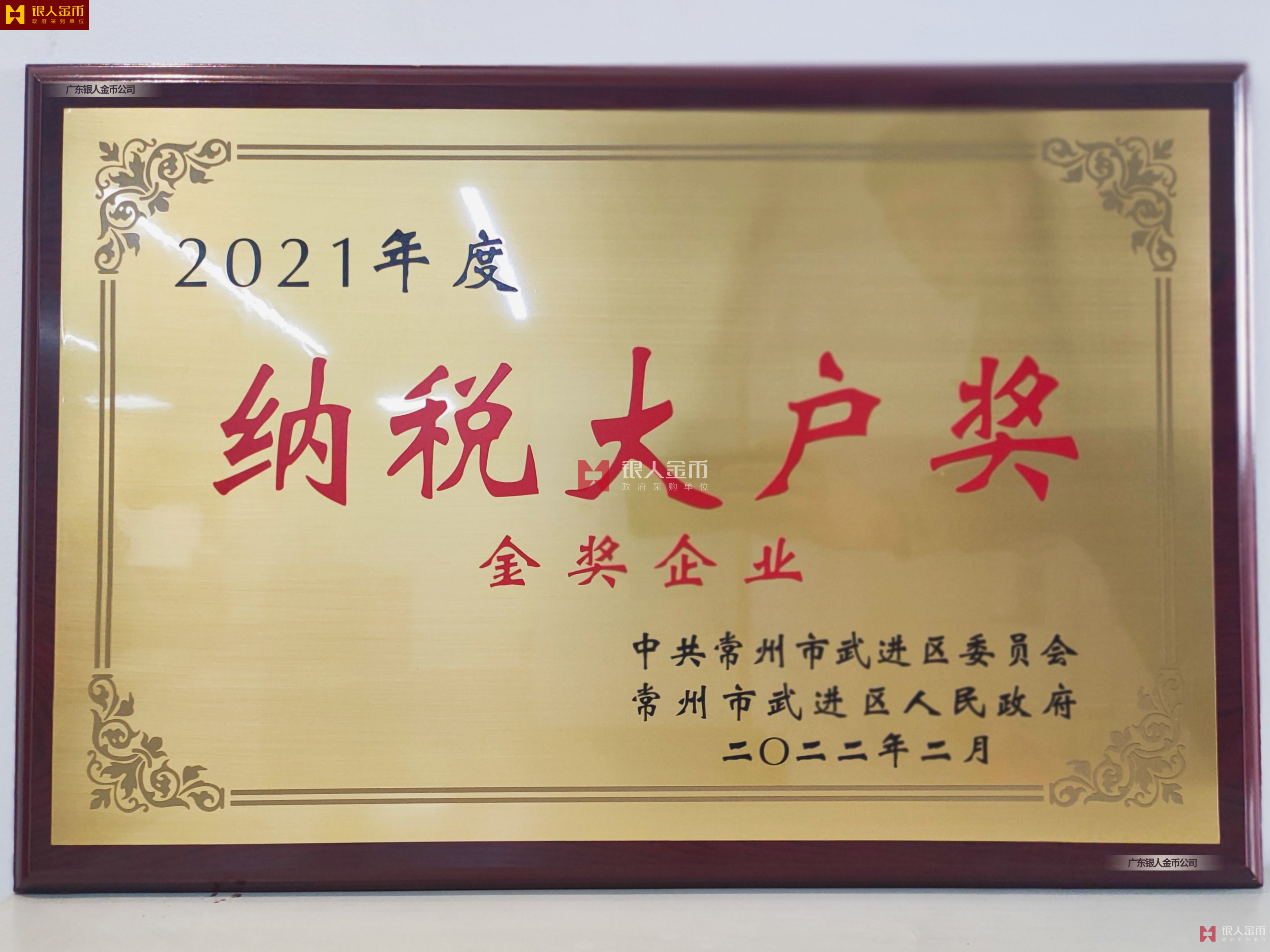 江蘇省常州市經濟高質量發?突出貢獻獎納稅大戶納稅大戶獎金獎”及鐘樓區“納稅突破獎” 優秀企業家金質獎章金牌獎牌證書(圖)