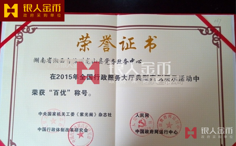 全國行政服務大廳典型案例展示活動百優稱號獎牌證書牌匾(圖)