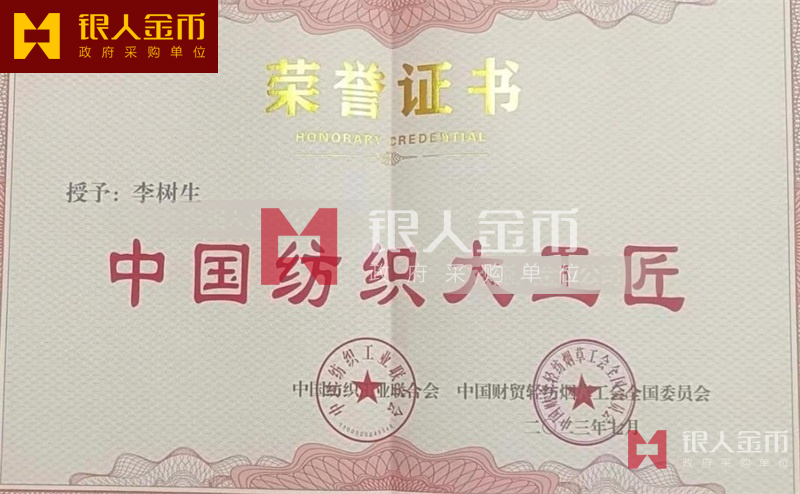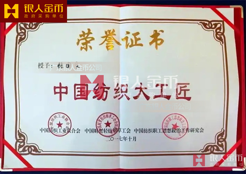 中國(guó)紡織大工匠獎(jiǎng)?wù)聞渍录o(jì)念章榮譽(yù)獎(jiǎng)?wù)聵s譽(yù)勛章獎(jiǎng)牌證書(shū)(圖)