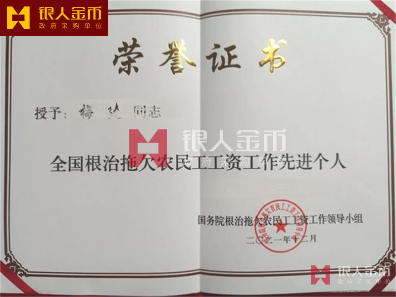 國務院根冶拖欠農民工工資工作領導小全國根治拖欠農民工工資工作先進個人和先進集體獎章勛章紀念章獎牌證書(圖)