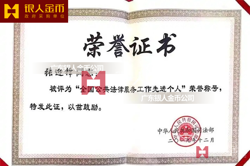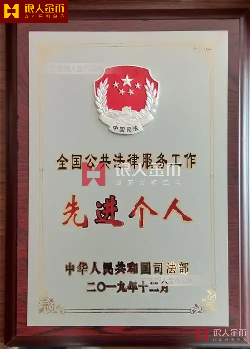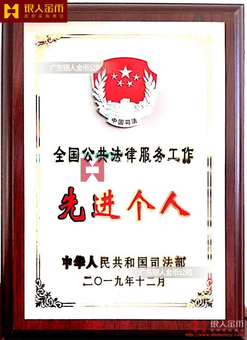 司法部全國公共法律服務(wù)工作先進(jìn)個(gè)人和先進(jìn)集體獎(jiǎng)牌證書(圖)