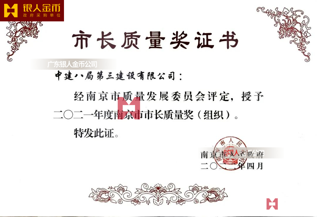江蘇省南京市人民政府南京市市長質(zhì)量獎獎牌獎?wù)伦C書牌匾紀(jì)念牌紀(jì)念章勛章徽章(圖)