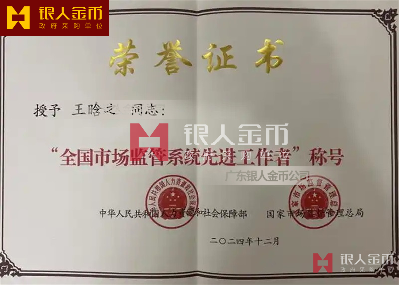 國家市場監督管理總局全國市場監管系統先進集體獎牌證書和先進工作者獎章勛章紀念章證書(圖)