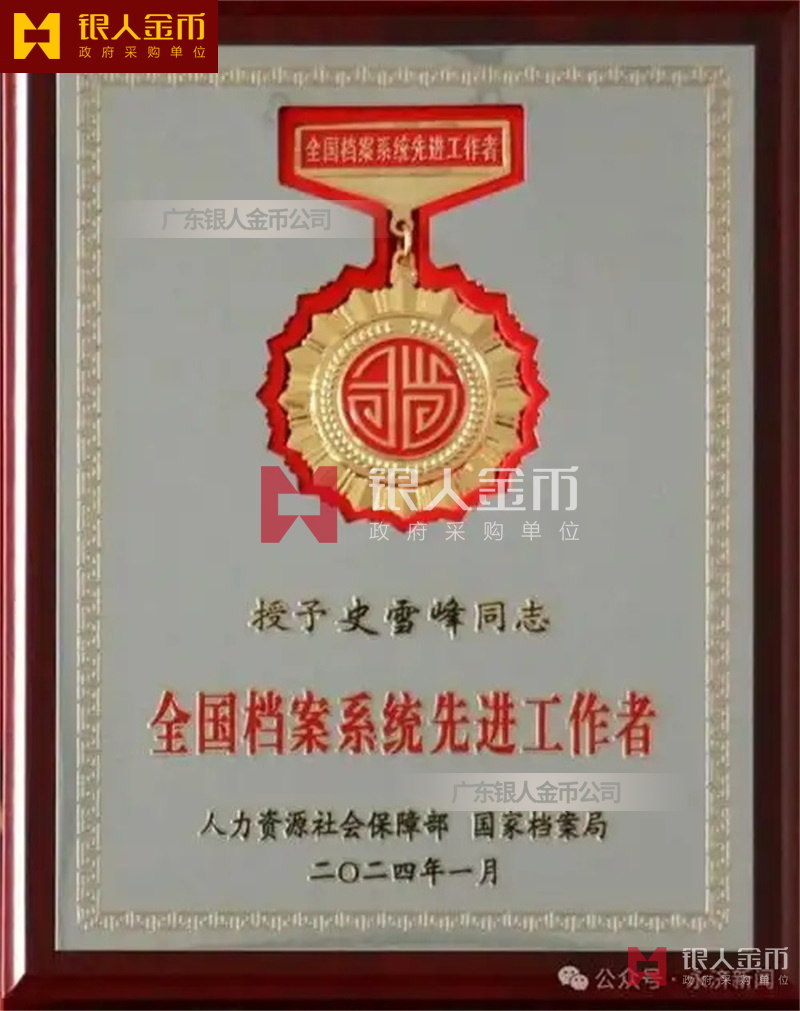 國家檔案局全國檔案系統(tǒng)先進集體獎牌證書和先進工作者獎?wù)伦C書勛章紀(jì)念章證書(圖)
