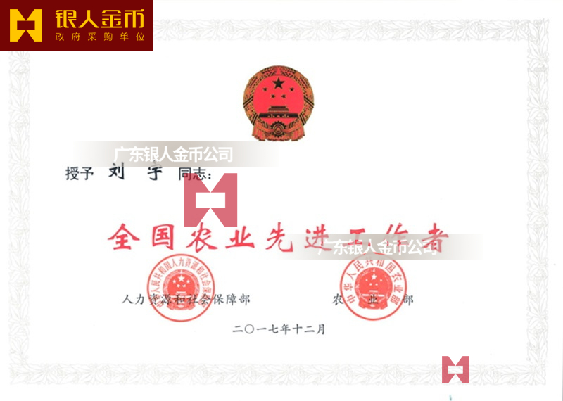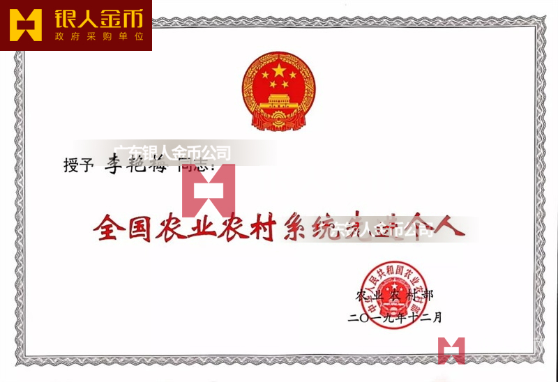 中華人民共和國農業農村部全國農業農村系統先進集體獎牌證書和先進工作者先進個人獎章勛章紀念章證書(圖)