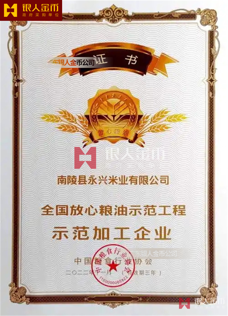 中國糧食行業協會全國糧油示范工程示范加工企業獎牌證書牌匾銅牌(圖)