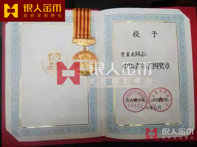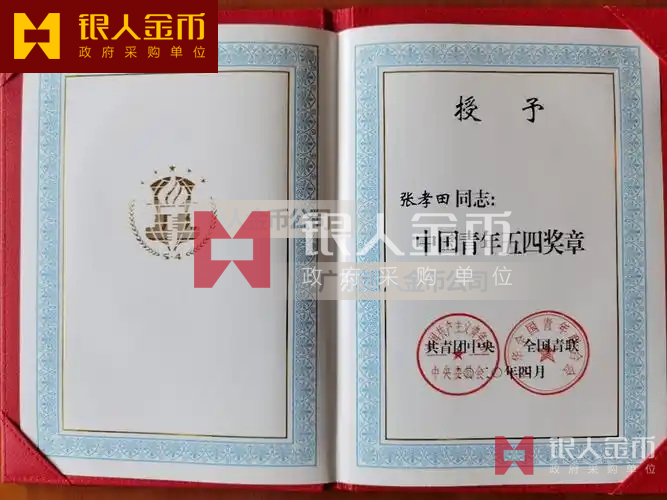 共青團(tuán)中央辦公廳 全國(guó)青聯(lián)中國(guó)青年五四獎(jiǎng)?wù)伦C書(shū)和中國(guó)青年五四獎(jiǎng)?wù)录w獎(jiǎng)牌證書(shū)(圖)