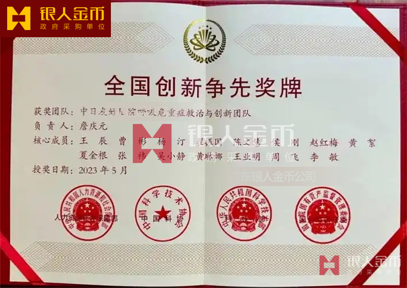 中華人民共和國科學技術部全國創新爭先獎牌證書(圖)