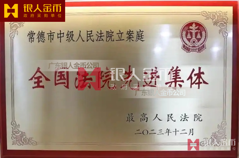 中華人民共和國最高人民法院全國法院先進集體獎牌證書(圖)