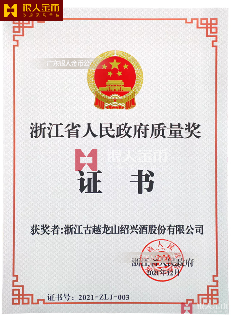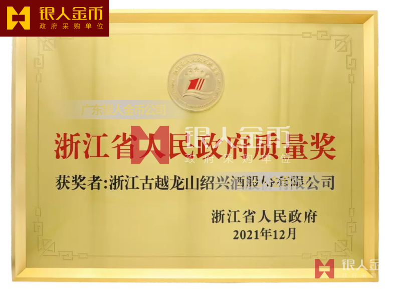 浙江省人民政府頒發(fā)頒授浙江省人民政府質(zhì)量獎證書獎牌牌匾銅牌匾額(圖)