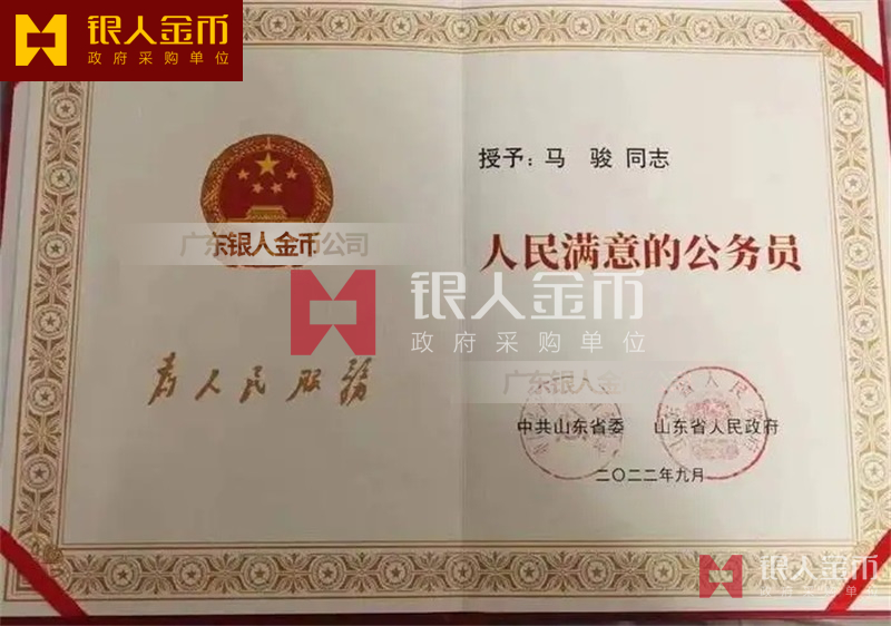 中共山東省委、中共山東省委組織部山東省人民滿意的公務(wù)員集體獎(jiǎng)牌證書和山東省人民滿意的公務(wù)員獎(jiǎng)?wù)伦C書(圖)