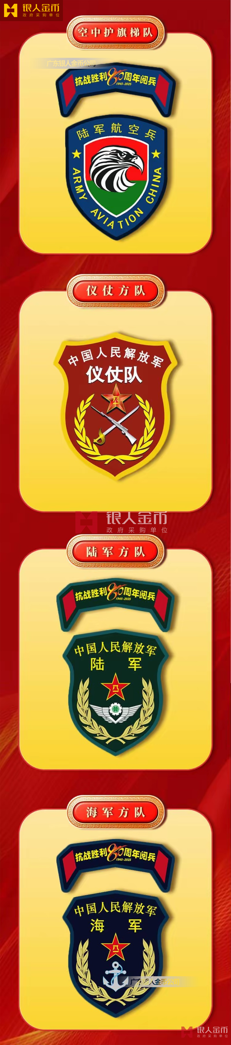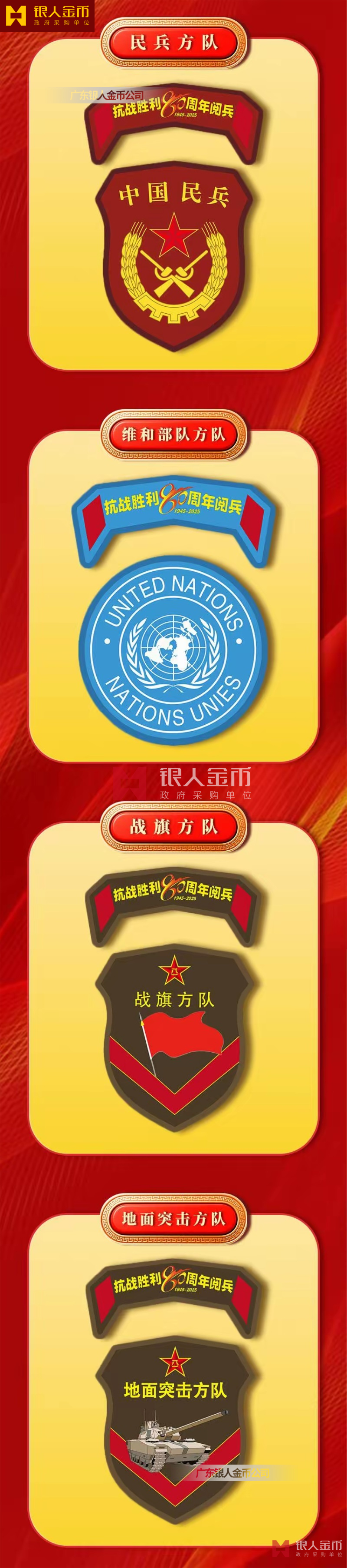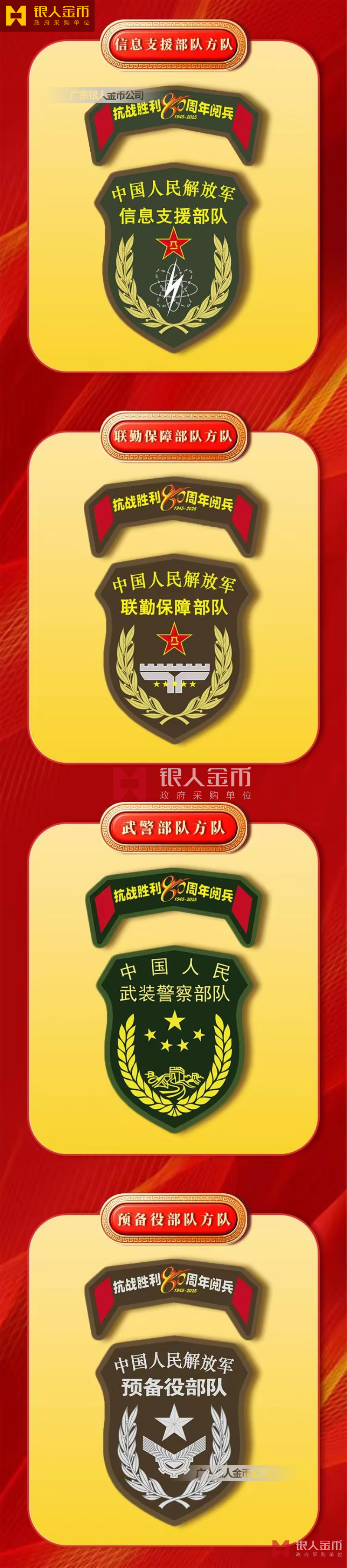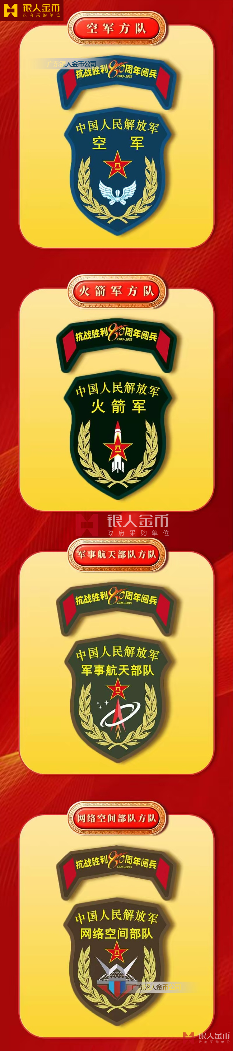 中央軍委海軍陸軍空軍武警部隊全軍各軍兵種中國人民解放軍九三閱兵臂章(圖)-【廣州徽章廠】