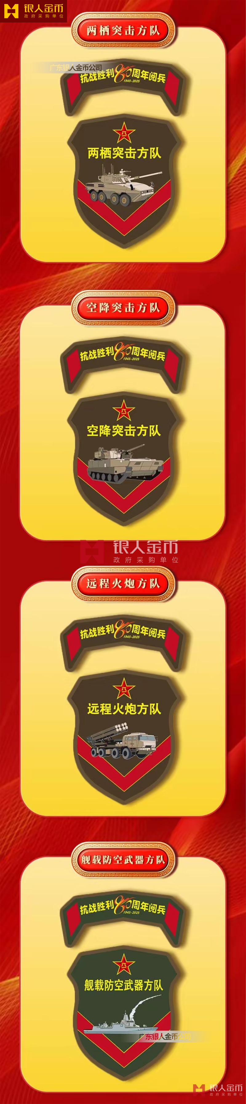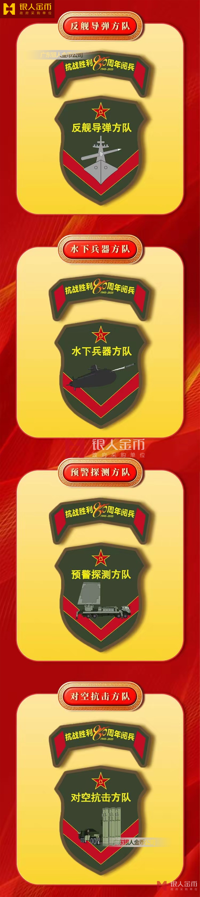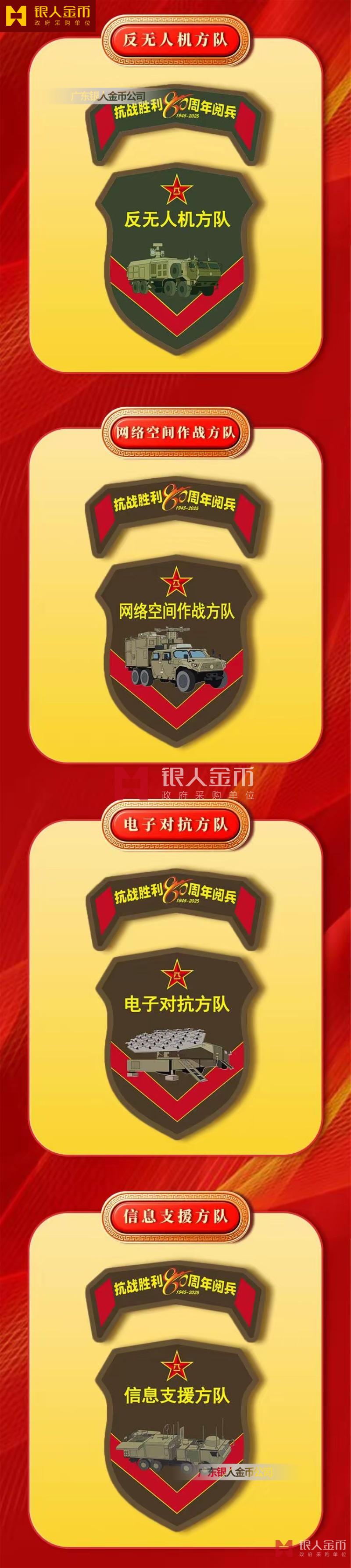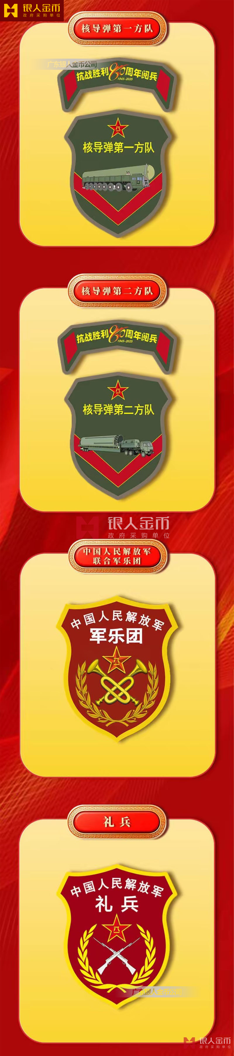 中央軍委海軍陸軍空軍武警部隊全軍各軍兵種中國人民解放軍九三閱兵臂章(圖)-【廣州徽章廠】