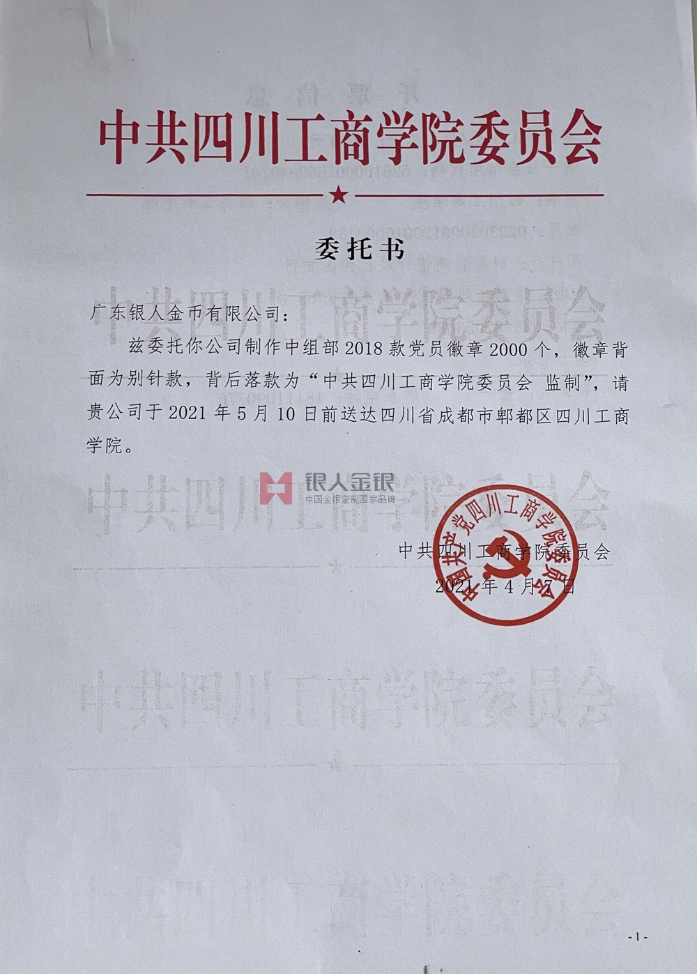 江蘇徐州工程學(xué)院定制紀(jì)念章授權(quán)委托書