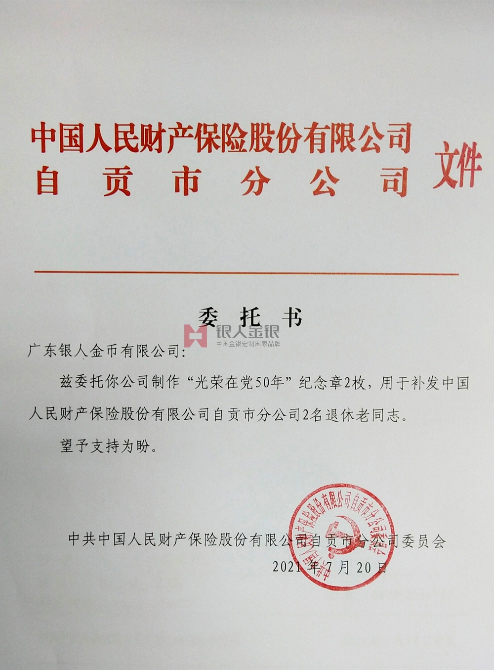 中國人民財(cái)產(chǎn)保險(xiǎn)公司黨委委托書公函