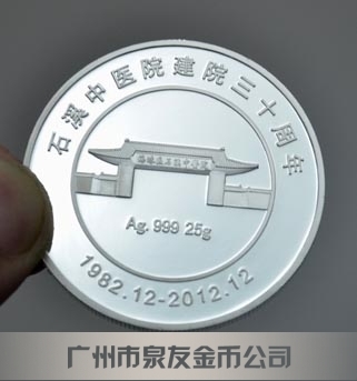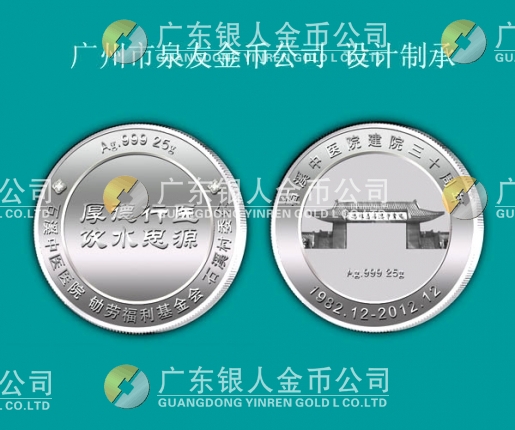 2012年11月石溪中醫院建院三十周年純銀紀念章定制