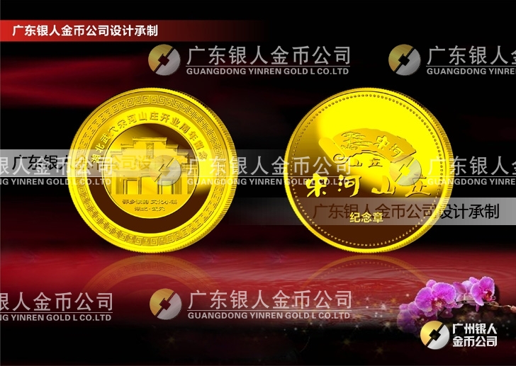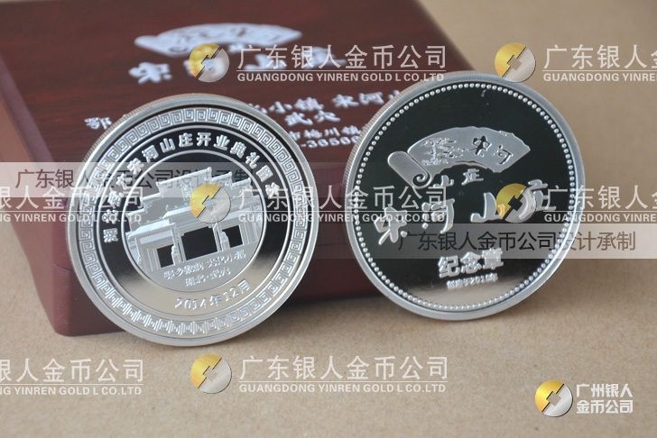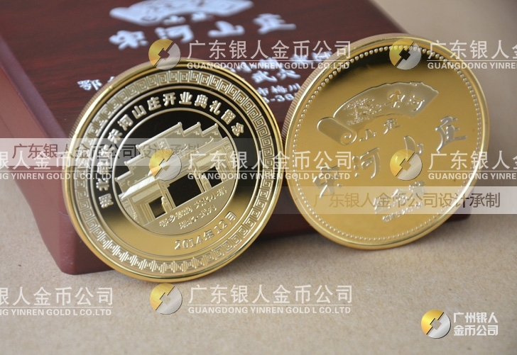訂做湖北宋河山莊開業留念紀念金銀紀念章、訂制紀念金銀章?