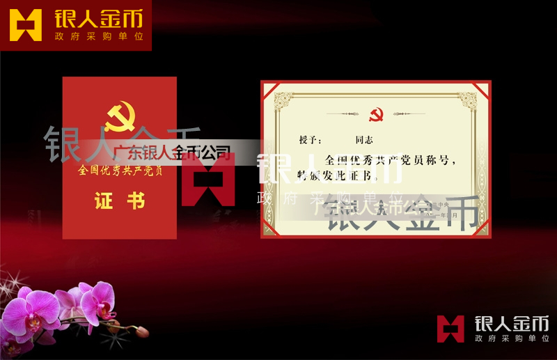 中共中央組織部“全國優秀共產黨員”獎章、證書與“全國優秀黨務工作者”獎章、證書和“全國先進基層黨組織獎牌、證書(定制標準)