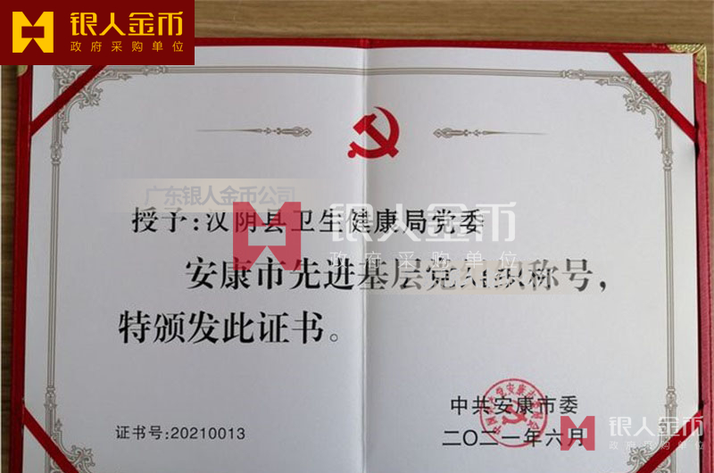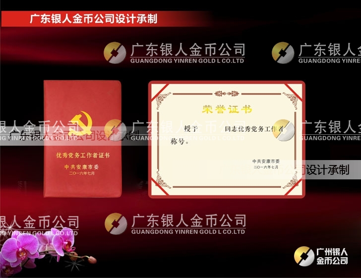“兩優一先”優秀共產黨員獎章證書、優秀黨務工作者獎章證書、先進基層黨組織獎牌證書(定制標準)