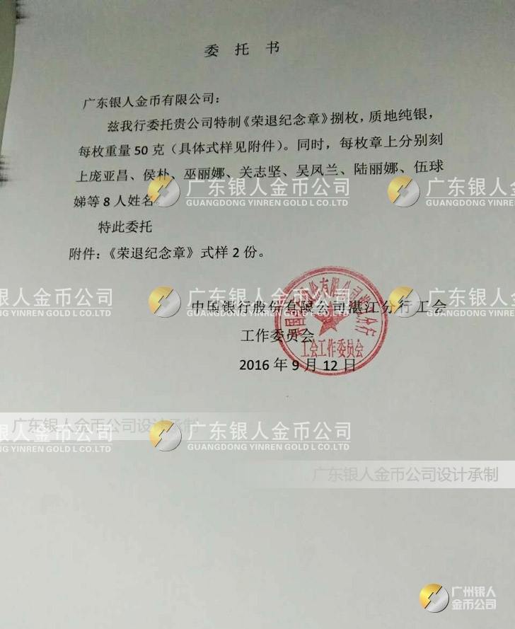 廣東銀人金幣公司,是集紀(jì)念章、獎?wù)隆渍略O(shè)計(jì)、研發(fā)、定制并服務(wù)于榮譽(yù)稱號全表彰獎勵周期管理,致力于證章文化產(chǎn)業(yè)發(fā)展和徽章信息化研究的大型生產(chǎn)制造獨(dú)資企業(yè),是國家級紀(jì)念章、獎?wù)碌脑O(shè)計(jì)者(外包)、制造者(定點(diǎn))和維護(hù)者(認(rèn)可),金銀章綜合解決方案的提供者。在全國獎?wù)聞渍骂I(lǐng)域,廣東銀人金幣公司擁有專業(yè)的勛章產(chǎn)業(yè)規(guī)模、齊全的證章門類和完整的紀(jì)念章產(chǎn)業(yè)鏈條。