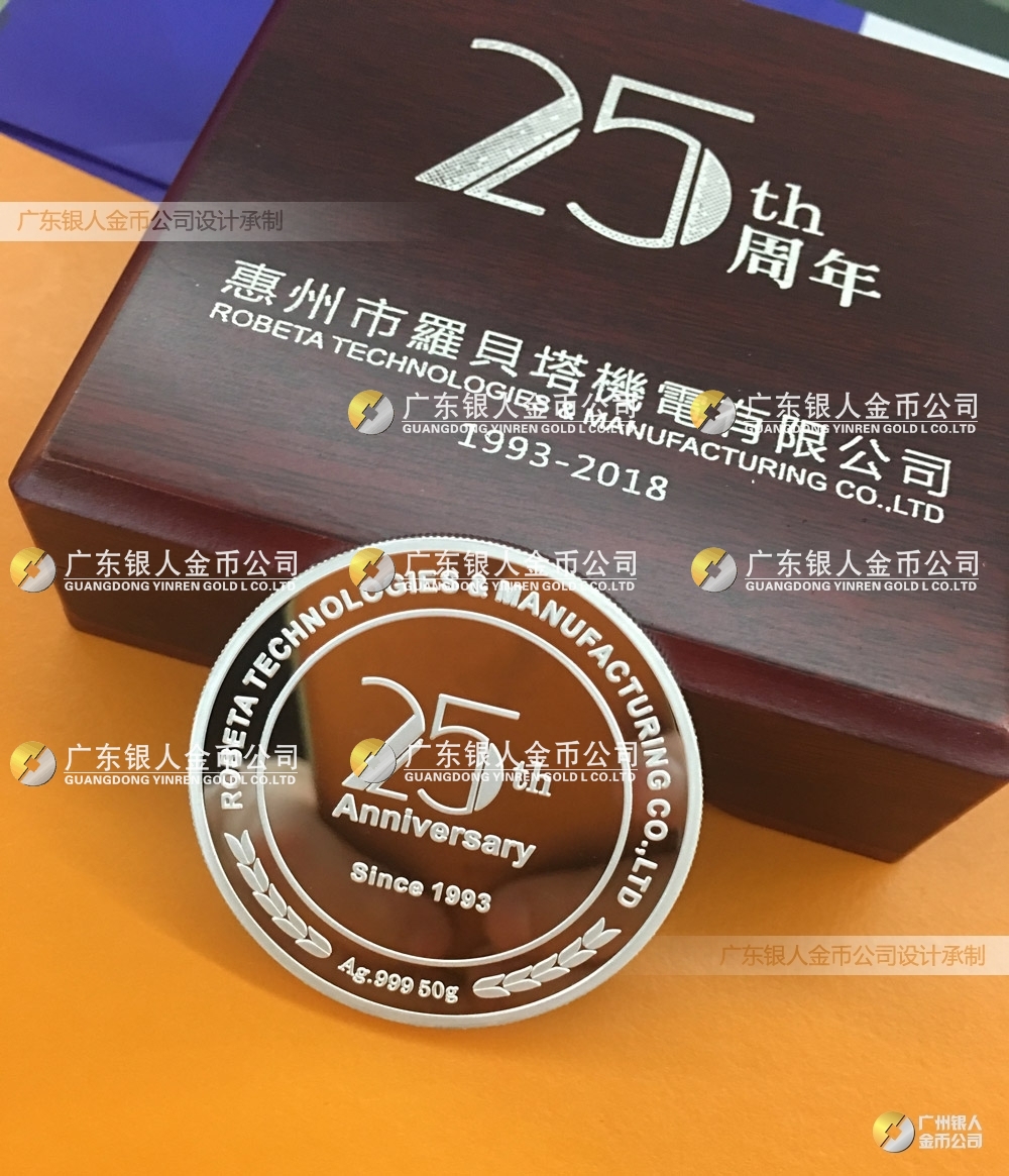 創(chuàng)建于1993年的機電行業(yè)品牌羅貝塔,為工業(yè)自動化設(shè)備領(lǐng)先企業(yè),特此委托我司定制慶祝公司成立25周年紀(jì)念銀幣。