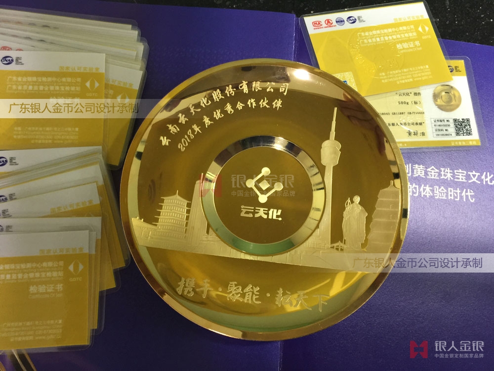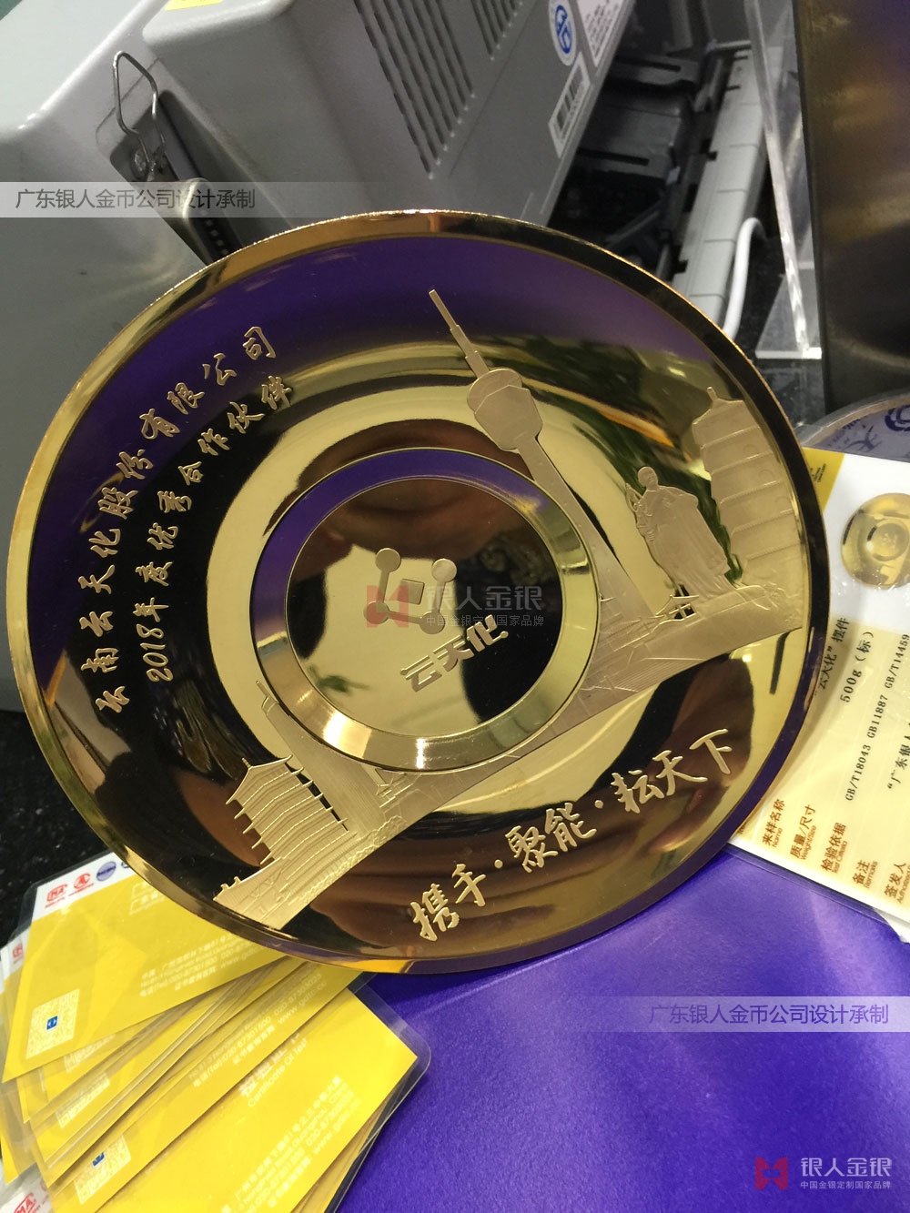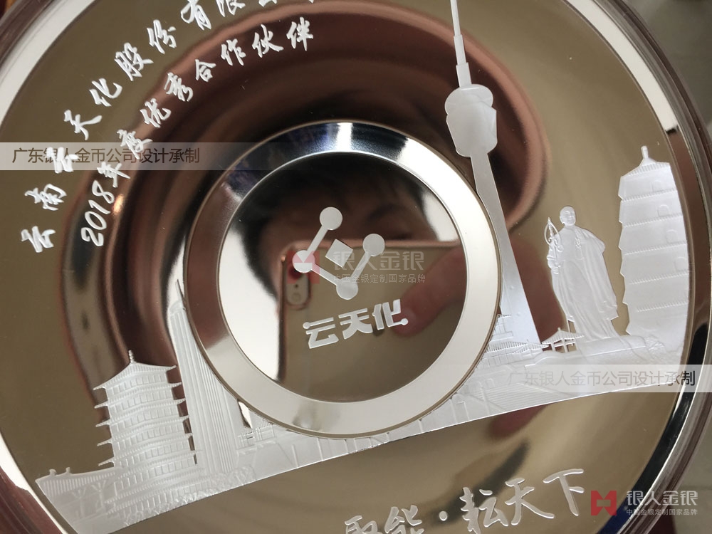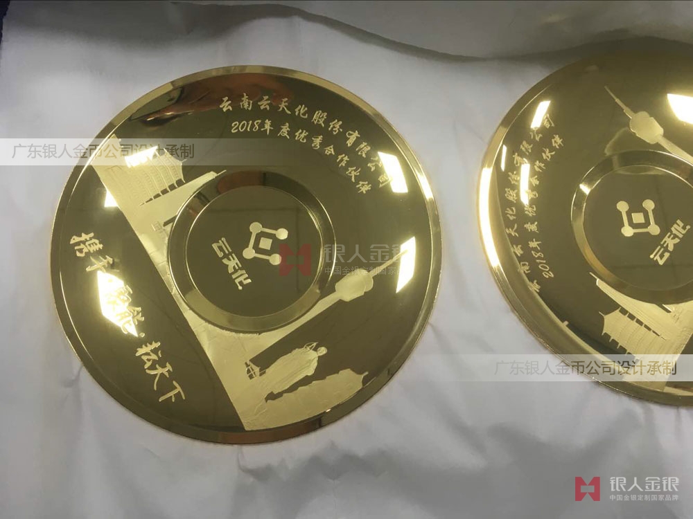 值此紀(jì)念改革開(kāi)放40周年之際,昆明云南云天化股份有限公司為表彰優(yōu)秀經(jīng)銷商、頒發(fā)授予純金銀紀(jì)念盤,以資鼓勵(lì)。