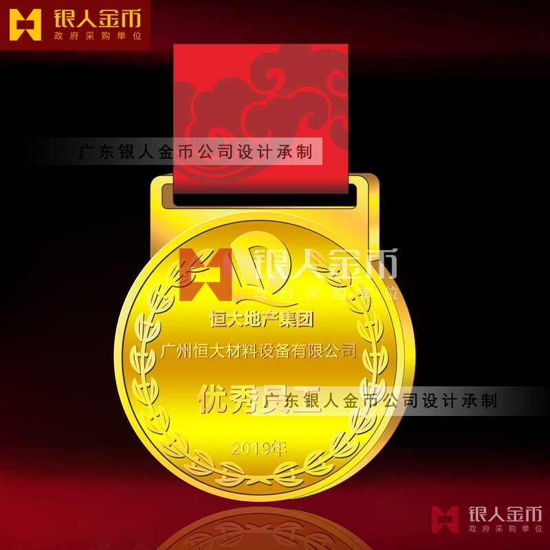 恒大公司優(yōu)秀員工十年勛章足金金牌定制_優(yōu)秀員工純金獎牌定制_突出貢獻(xiàn)獎牌定制_優(yōu)秀員工勛章定制_純金牌定制_足金牌定制