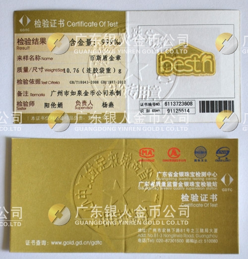 【金銀品質】 國家檢測鑒定、真假防偽查詢