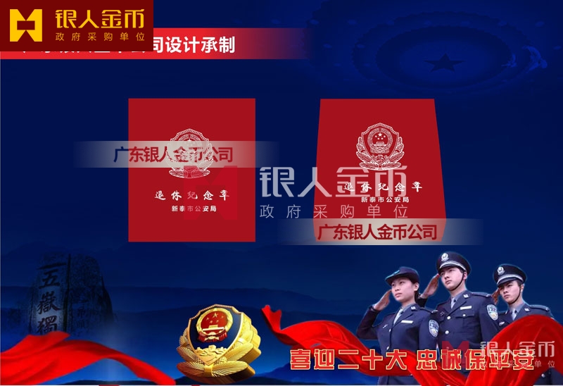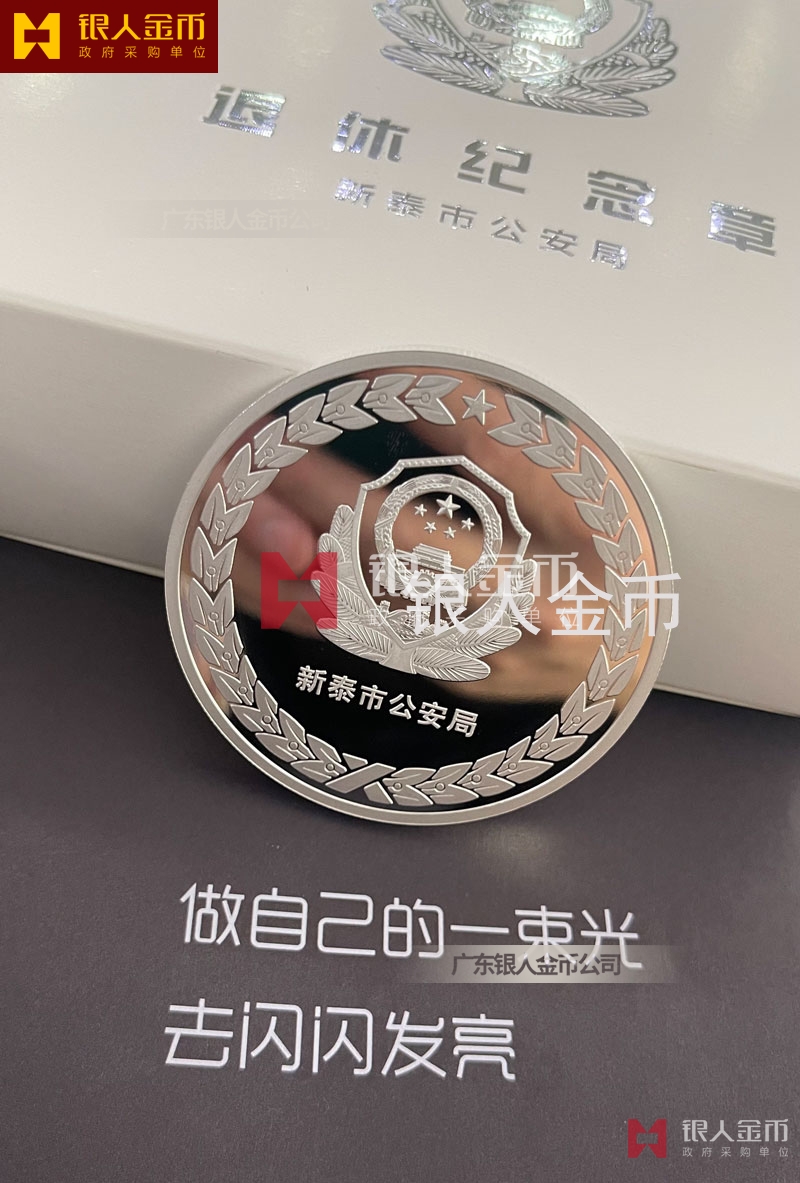 山東省公安廳泰安市新泰市公安局公安機關民警退休紀念章定制_從警年限紀念榮譽章_警察從警30周年40周年紀念章定制_干警光榮退休紀念章定做訂制制作